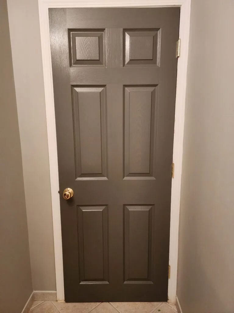 It seems that interior door painting trends are leaning towards black and dark gray colors at the moment, so that’s the direction we’ll be taking. I’m going to use “Pro-Classic Semi-gloss” from Sherwin-Williams in the shade Behr’s “Welded Iron.”
