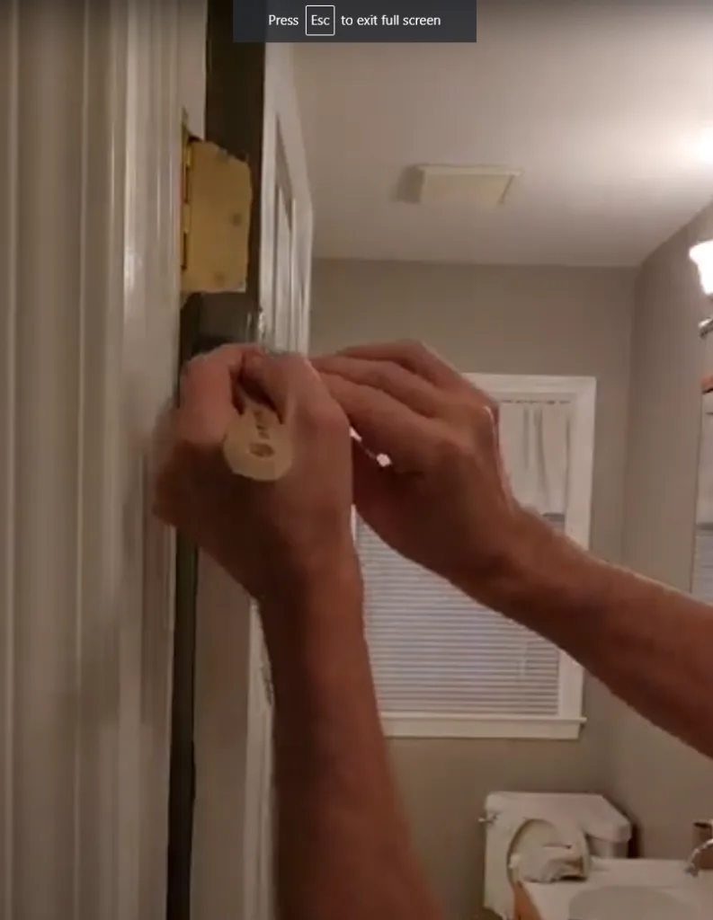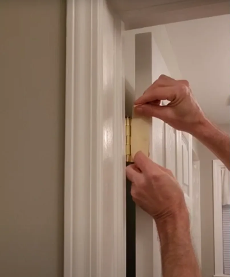 Prepare by taping the door hinges and removing the door knob. Wrap masking tape around the door knob if you choose to leave it on, ensuring it doesn’t touch the door to avoid leaving a ring of old white paint exposed around the knob once the painting is complete. Similarly, apply tape over the hinges and use a utility knife to cut out any overlapping tape. These preparations will ensure a smooth and professional finish when painting the interior door.